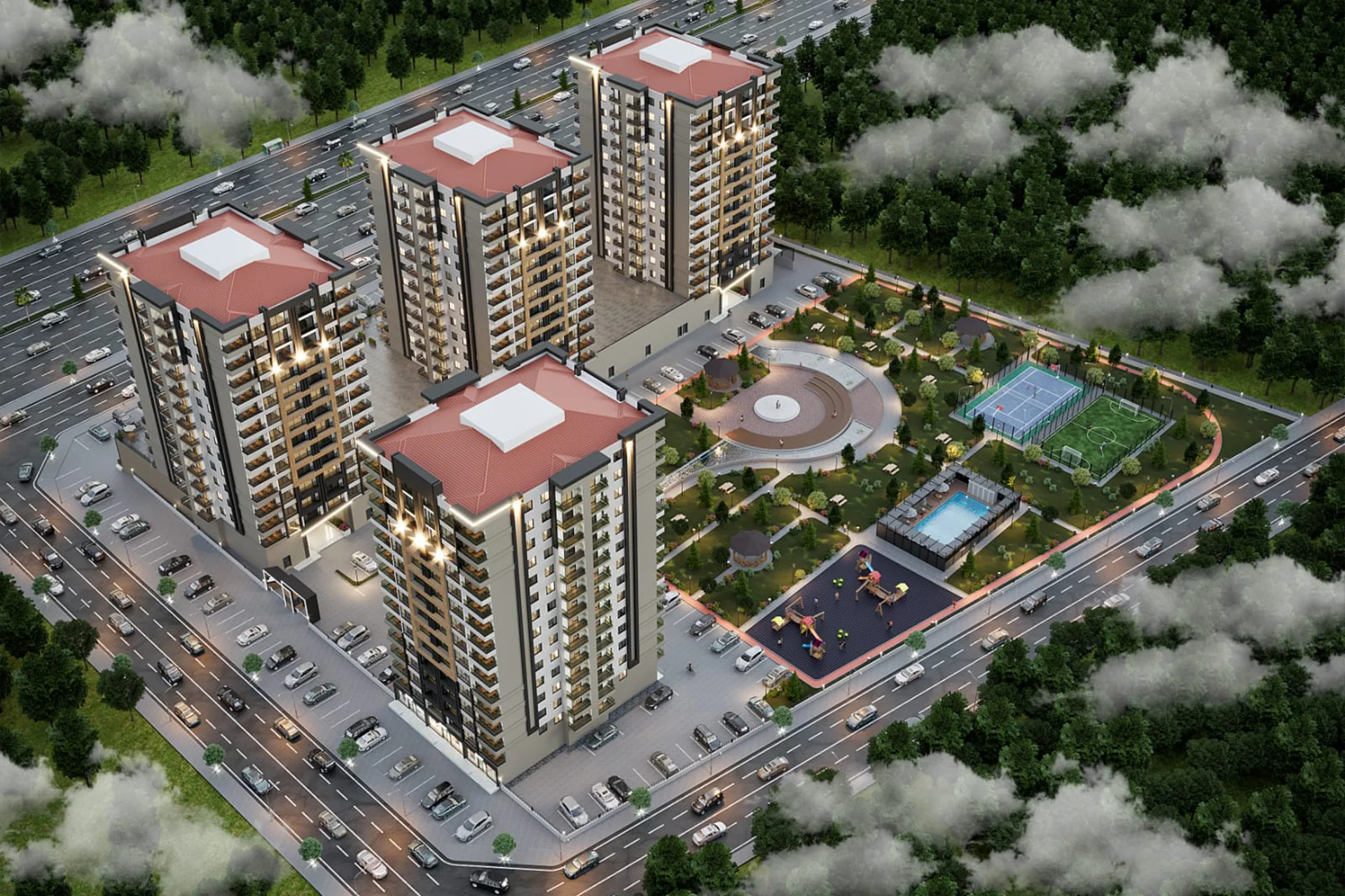 Modern mimari, doğanın kalbinde, huzurlu ve seçkin yaşam alanları... Hayatın merkezinde geniş, konforlu, doğa ile iç içe yaşam alanları için Ay Yapı konfor ve kalitesiyle tanışın.
